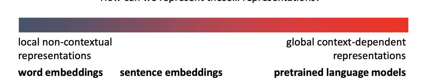 기본적으로 표현을 학습하는 것은 단어나 문장 등을 벡터로 변환하는 것이다. 주변 단어들을 통해 특정 단어가 나올 확률을 계산하는 방식 등을 이용한다. 임베딩이 잘 된 경우에는 유사한 단어까지 모이거나 대수적인 관계를 갖게 된다. 예를 들어 "왕 + 여자 = 왕비"와 같은 연산이 가능하게 된다. 딥러닝 모델과 방대한 양의 라벨링 되지 않은 데이터를 활용해 이러한 표현을 학습하는 것을 사전 학습된 언어 모델(pre-trained language model)이라고 한다. 이러한 언어의 표현을 배우는 과정을 upstream task라고 한다. 사전 학습 모델을 이용해 질의 응답이나 감정 분석 같은 원하는 작업을 하는 것을 downstream task라고 한다. 딥러닝 모델 학습에는 방대한 양의 데이터가 필요하나 사전 학습된 모형을 사용하면 적응 양의 데이터를 이용해서 우수한 성능의 downstream task를 수행하도록 학습할 수 있다.ELMo